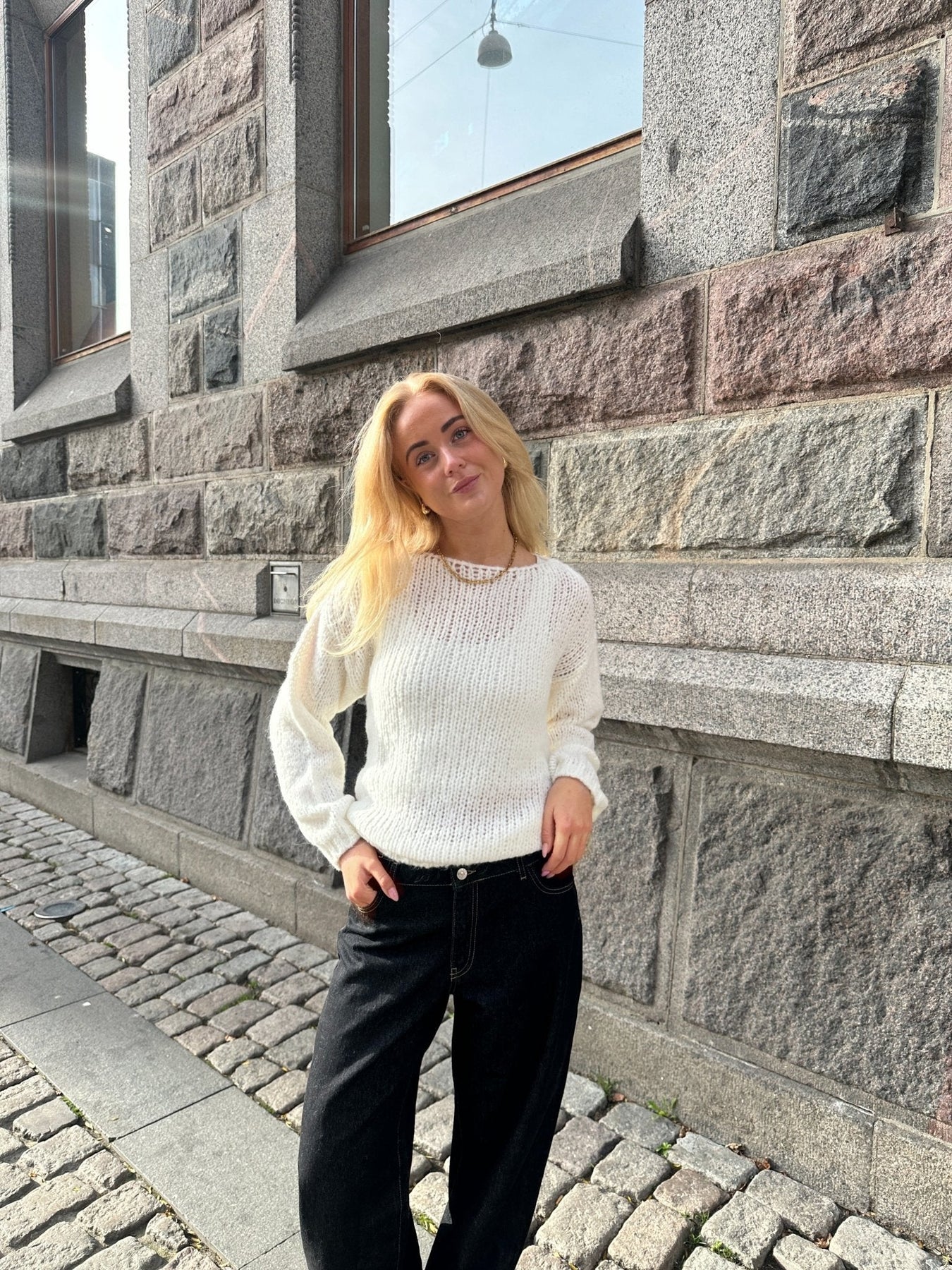 Forkæl dig selv med vores luksuriøse, bløde knit, der kombinerer komfort og stil på perfekt vis. Denne skønhed har en elegant off shoulder detalje, der tilføjer et strejf af femininitet og gør den ideel til både hverdag og fest.