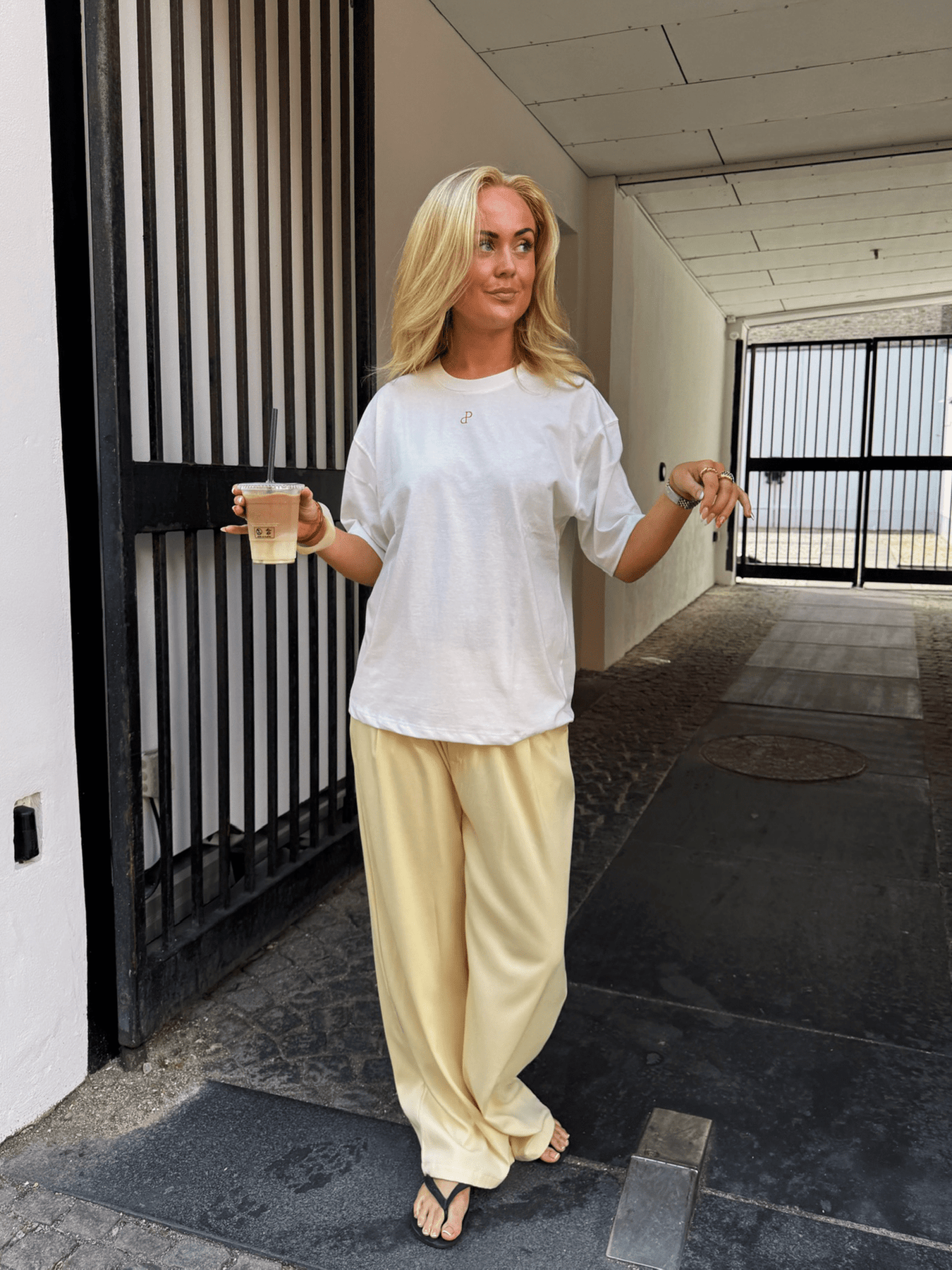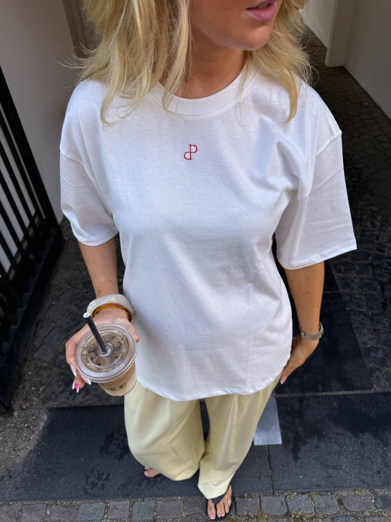 En afslappet og stilren t-shirt med et minimalistisk broderet logo på brystet. Den oversized pasform giver et cool, casual udtryk og gør den ekstra behagelig at have på – perfekt til både hverdagsbrug og lounge-look.
