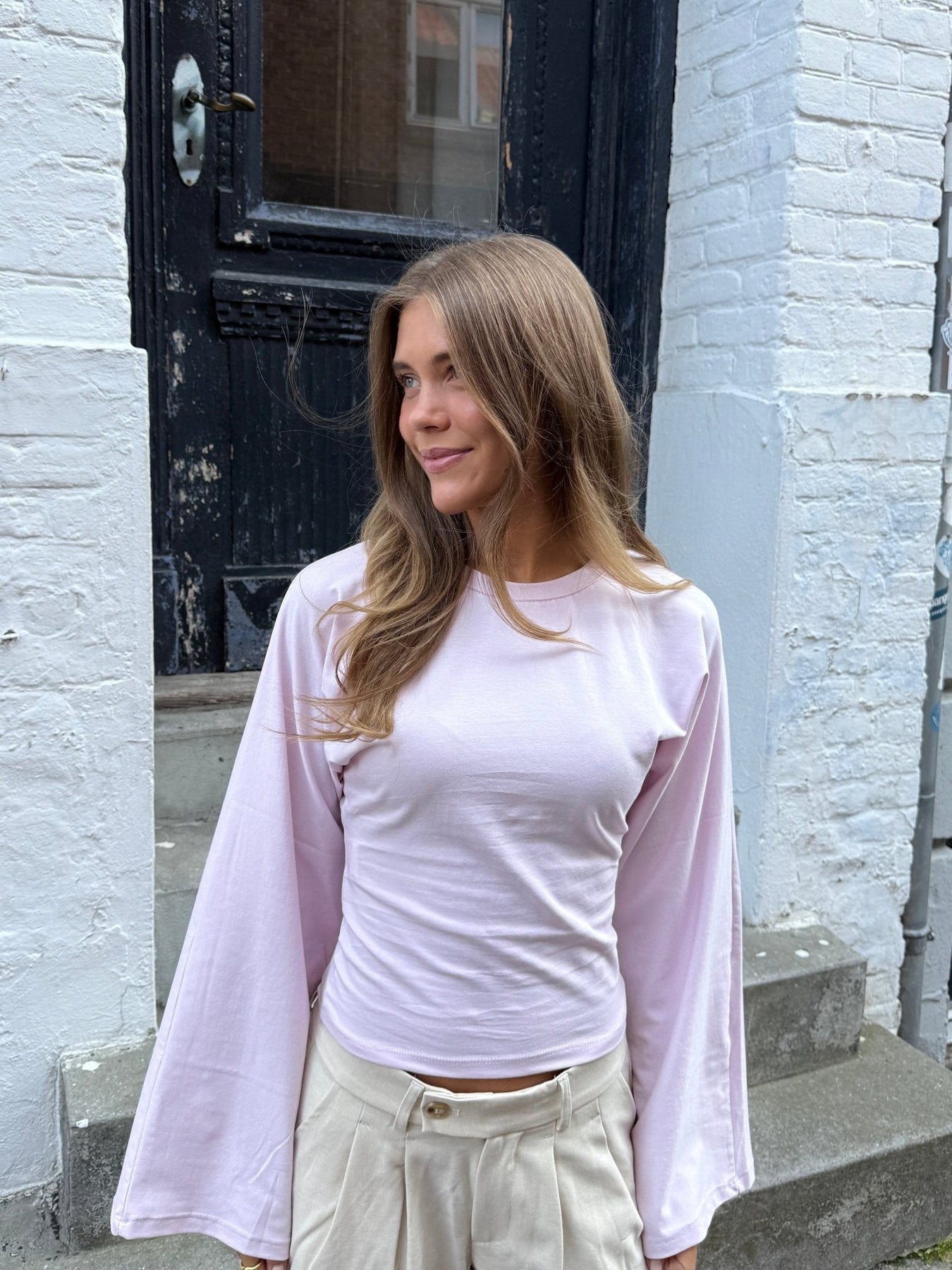 Klara Long Sleeve Waisted Top - Baby Pink