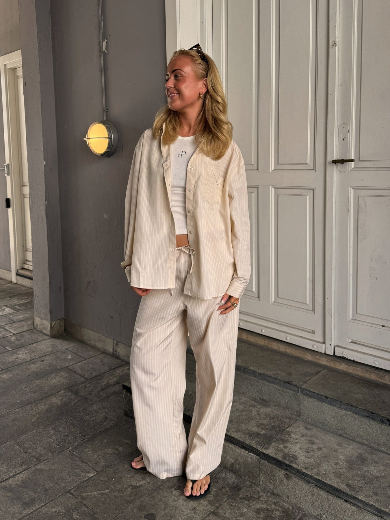 En afslappet og stilren skjorte med klassiske striber og en rummelig pasform. Det enkle design kombineret med diskrete detaljer som brystlomme og knaplukning gør den til et alsidigt item, der kan styles både åbent og lukket.