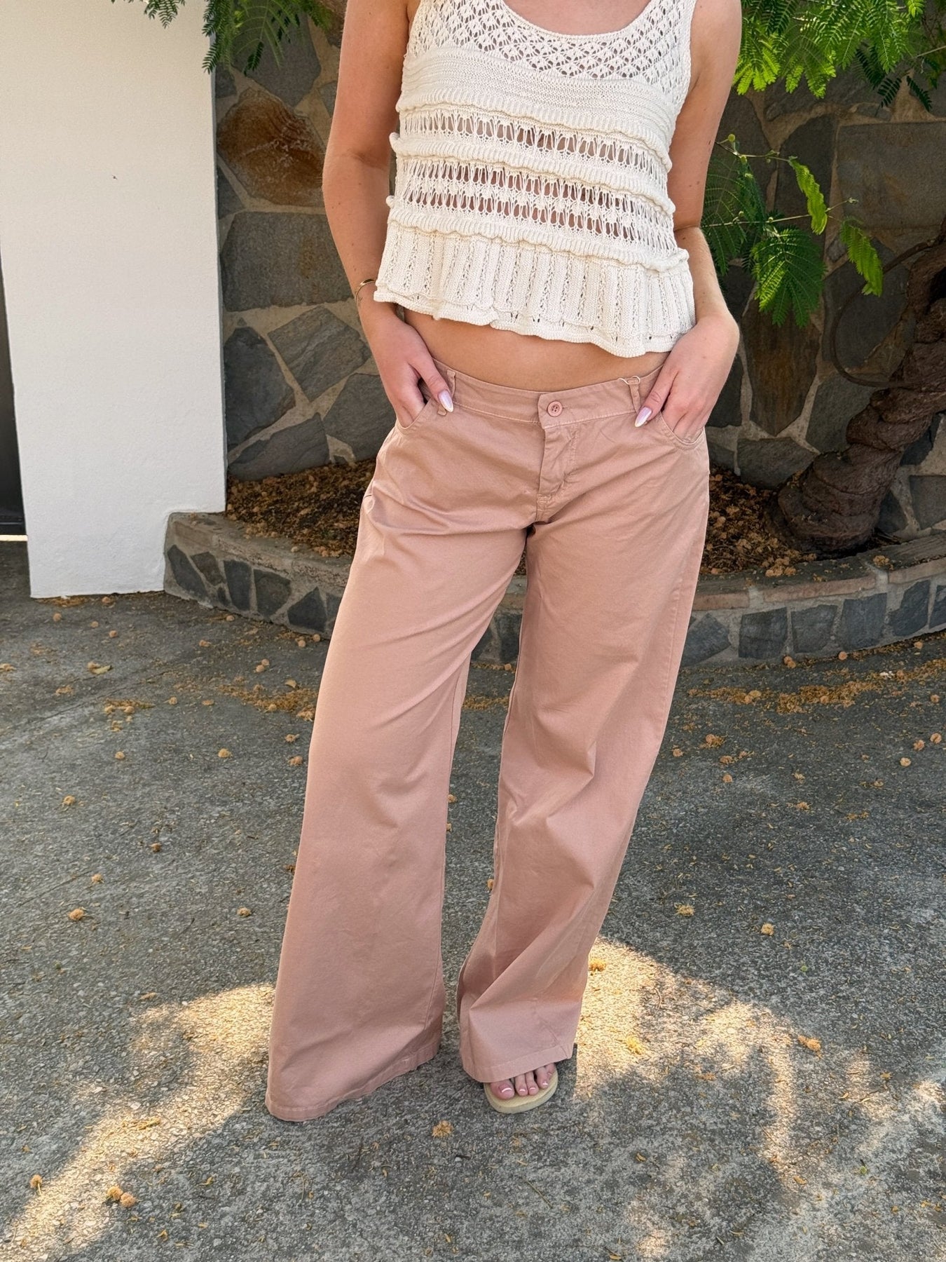 Dianna Low Waist Pants - Powder Pink