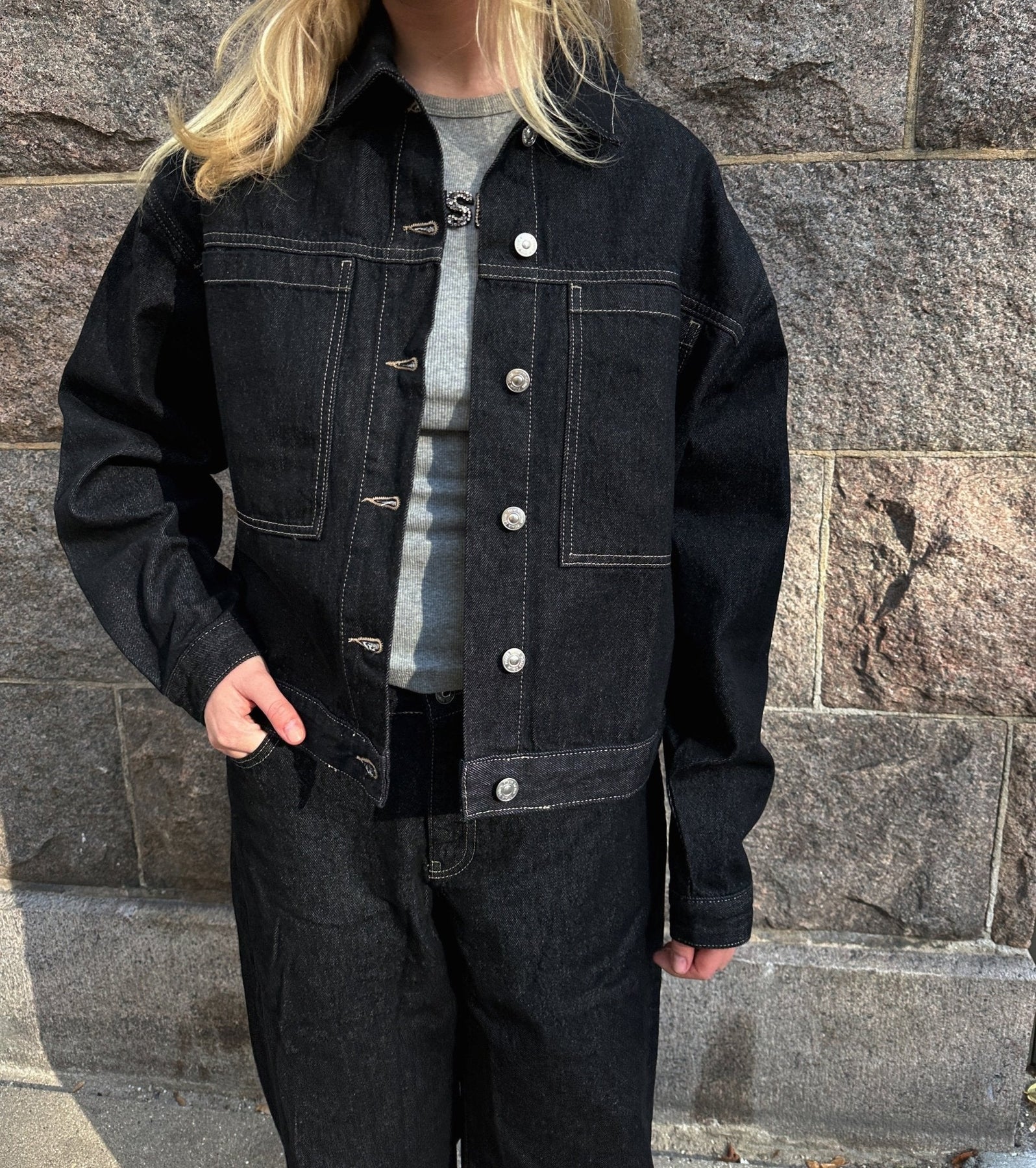 Den lækreste denim jakke, lavet i et tykt materiale, så jakken både kan bruges som overgangsjakke, samt til hverdag og til fest.