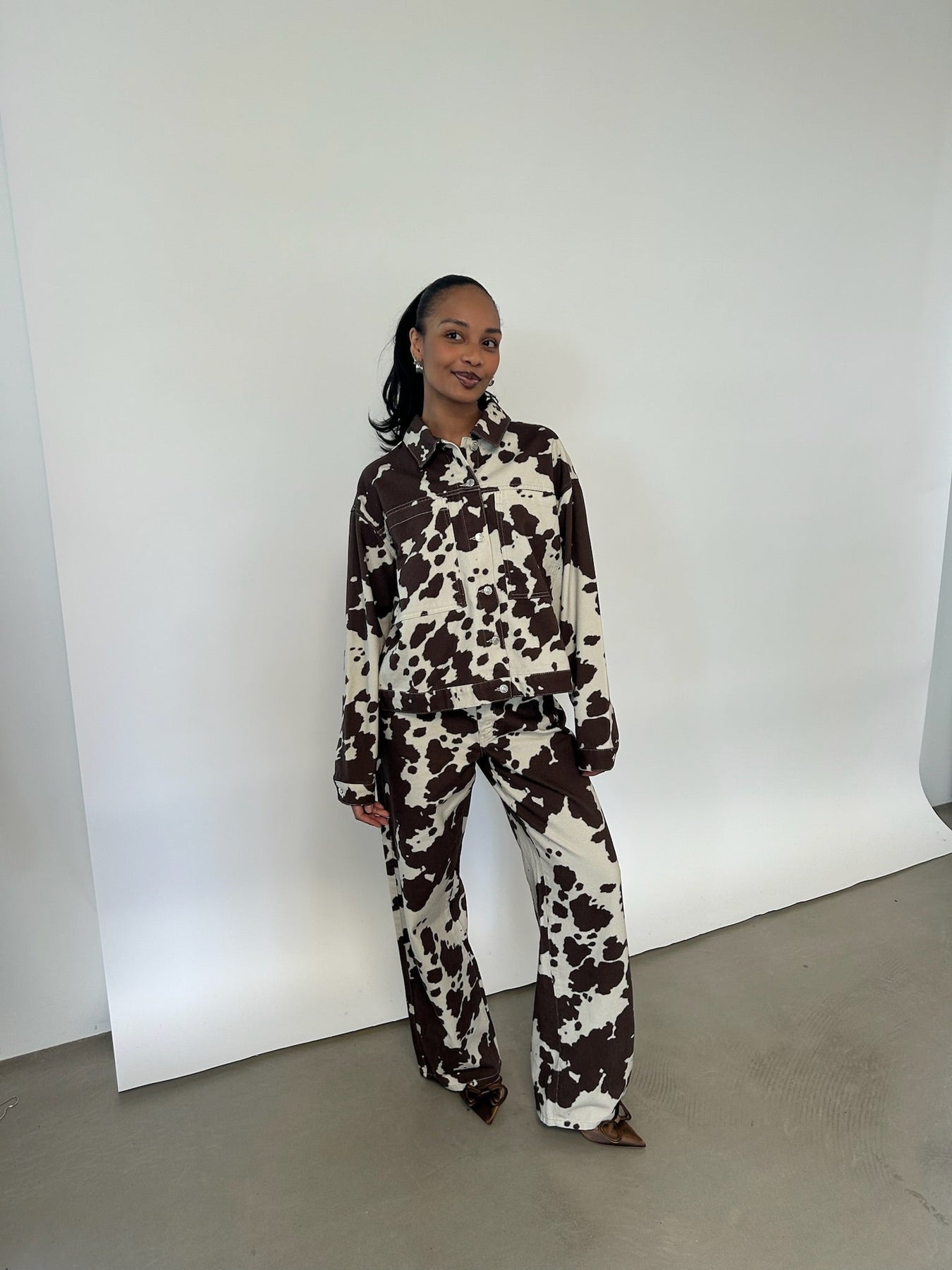 Denimjakke med cow print