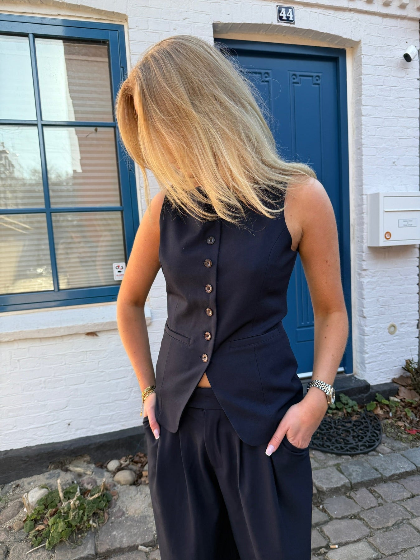 Denne habitvest er den perfekte kombination af elegance og alsidighed. Den er designet i et klassisk og flot look, der passer perfekt til både skole, fest og hverdag. Med sine skarpe linjer og fine detaljer giver den et sofistikeret udtryk, samtidig med at den er super behagelig at have på. Vesten kan nemt styles med både skjorter, t-shirts eller toppe, og dens tidløse design gør, at den aldrig går af mode. Uanset om du skal til fest eller have et smart look til skolen, er denne habitvest det ideelle valg.