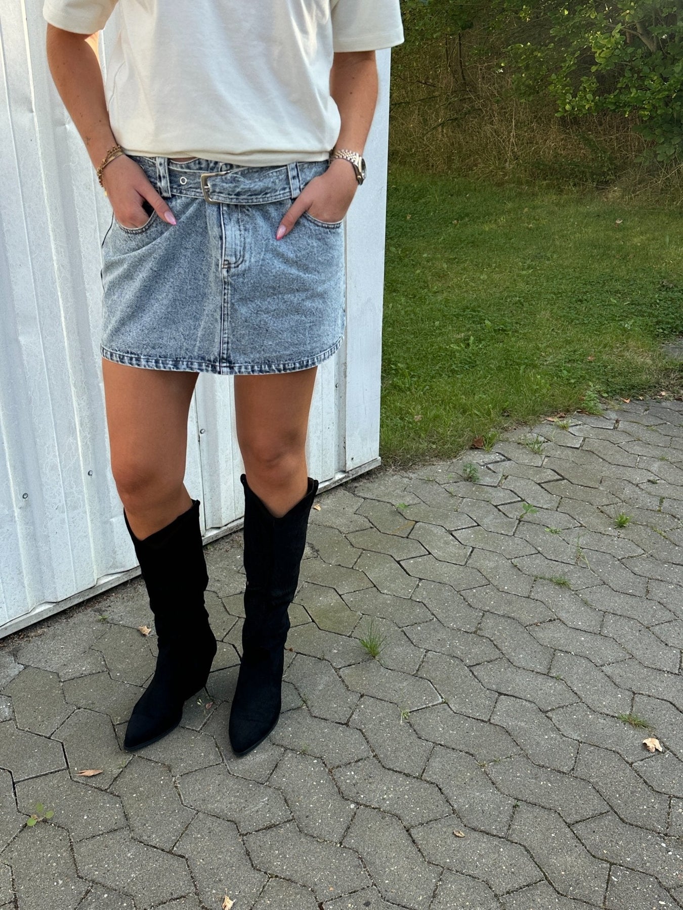 Høje cowboy støvler i faux suede. Støvlerne har det fineste mønster i stoffet og har en høj bund.